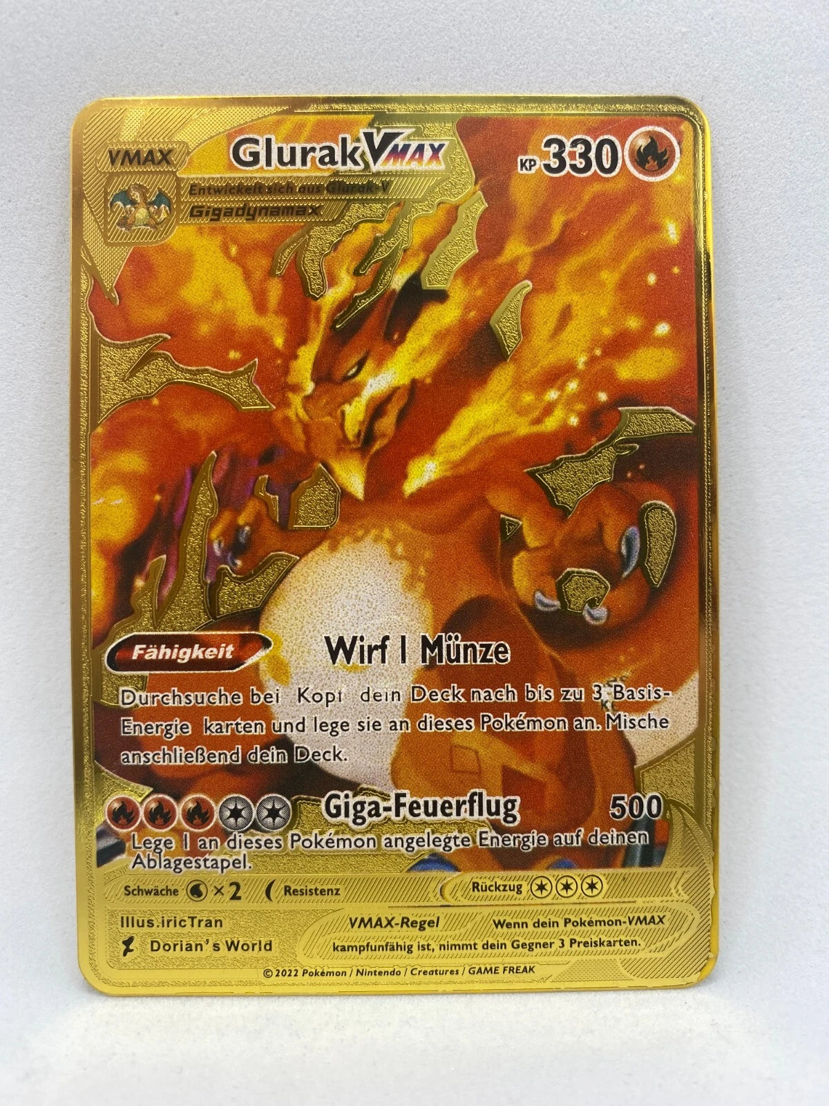 🃏 Hochwertige Metallkarte mit coolem Glurak VMax Motiv – ideal für Kinder und junge Pokémon-Fans